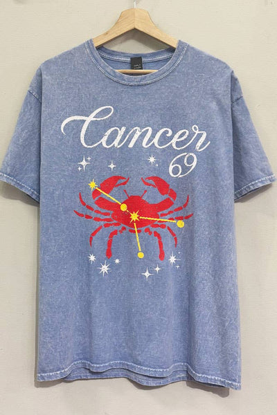 SHORT SLEEVE GARMENT-DYED/MINERAL-WASHED "CANCER" ZODIAC SIGN OVERSIZED GRAPHIC TEE *FEATURES CONVENIENT TEARABLE / TEAR-AWAY LABEL.