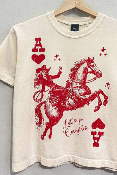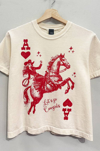 SHORT SLEEVE HEAVYWEIGHT COTTON CROPPED COWGIRL PLAYING CARD WESTERN GRAPHIC TEE *FEATURES CONVENIENT TEARABLE / TEAR AWAY LABEL.