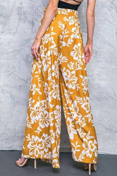A printed woven pant featuring front pleats wide leg and side zipper closure. Matching top IT12504