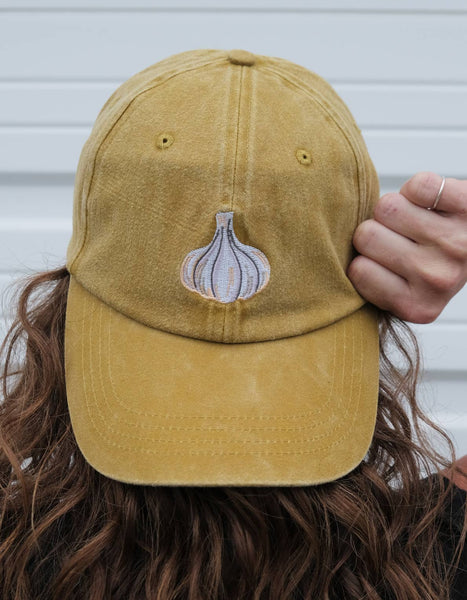 Baseball Hat, Hat, Cap, garlic, farmers market, bulb, gardener, cook, garnish, Summer, Specialty Foods, Chef, Foodie, Embroidered, Embroidery, food theme gift, foodie gift, idlewild, idlewild co.
