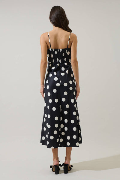 Derba Polka Dot Pleated Satin Midi Dress