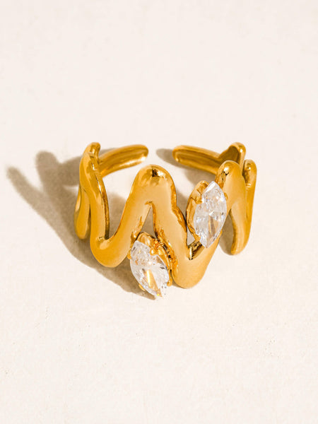 18K Gold Non-Tarnish Abstract CZ Open Ring