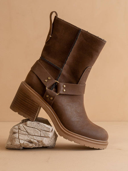 Introducing The Clyde: moto-inspired with a modern edge, this ankle boot features bold buckles and a sleek silhouette. Crafted with atelier-picked materials, The Clyde adds a touch of rebellion to your look, perfect for making a statement in any season.