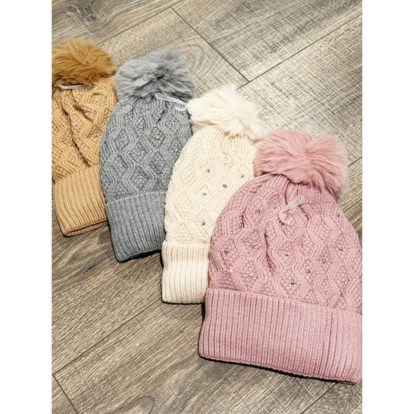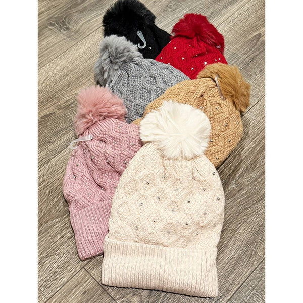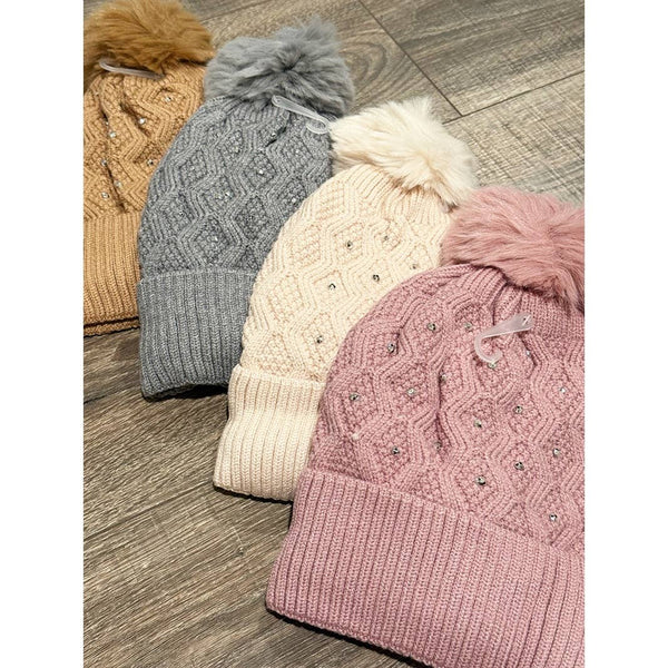 Cozy Cable Knit Beanie: Fleece-lined, super soft, and studded with rhinestones for a little twinkle. Final sale.