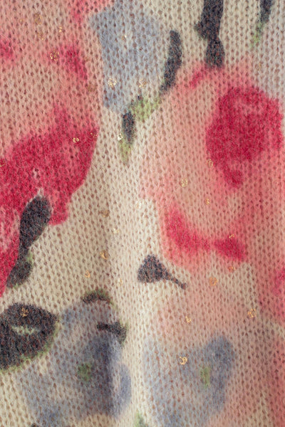 Design: Large-scale pink floral print on a cream base