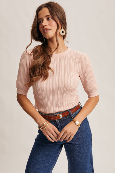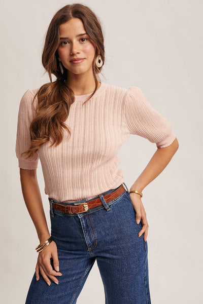 - Chic yet understated, this knit top blends timeless polish with subtle texture.