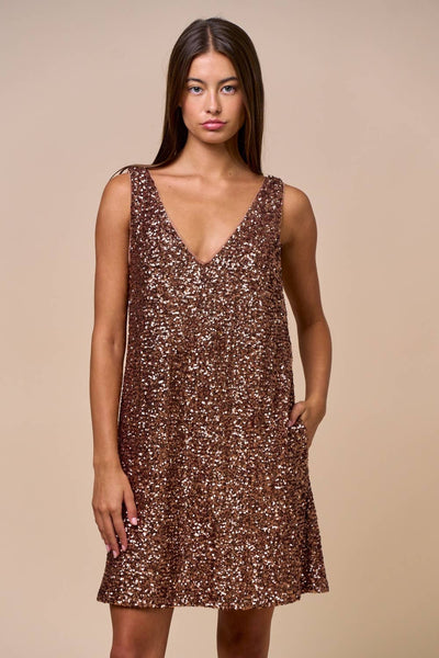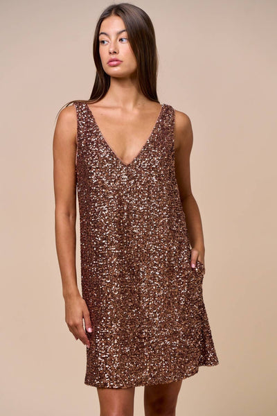 Make an entrance in this dazzling sequin dress, finished with an unexpected bow detail in the back for a touch of playful elegance. With its figure-skimming silhouette and allover sparkle, it's your go-to for events where shine is a must and style is effortless. Tags: Sequin Dress, Bow Detail, Party Look, Sparkly Dress, Evening Wear, Glam Moment