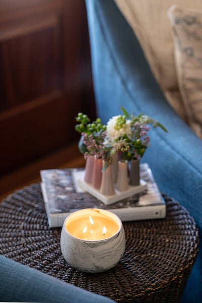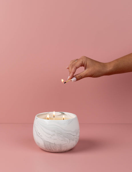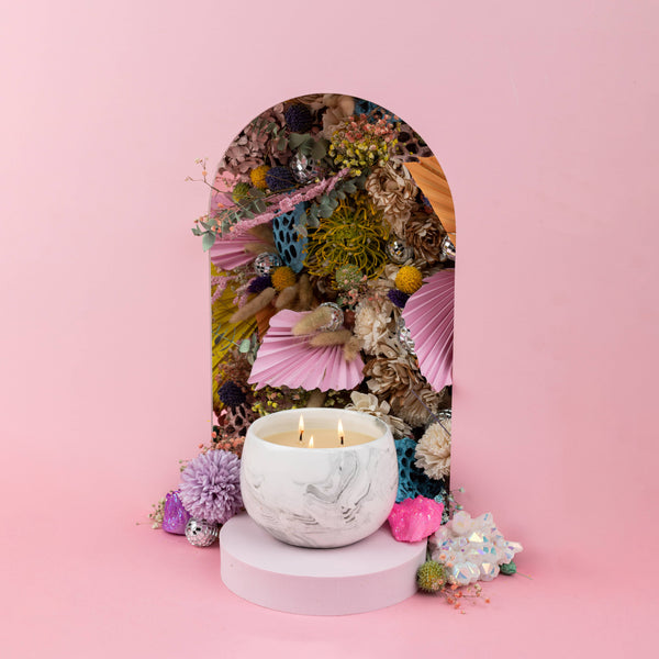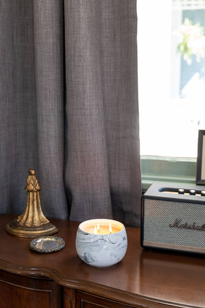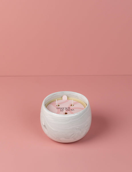 Sweet Grace #050 candle is the perfect blend of modern design and versatile functionality. Its white ceramic vessel with grey swirls is a striking addition to any decor. Made with our proprietary soy-blend wax formulation, this candle burns evenly and cleanly, filling your space with a captivating scent. Unwind and rejuvenate with the luxurious fragrance of Sweet Grace #050 candle, and create a serene atmosphere in your home.